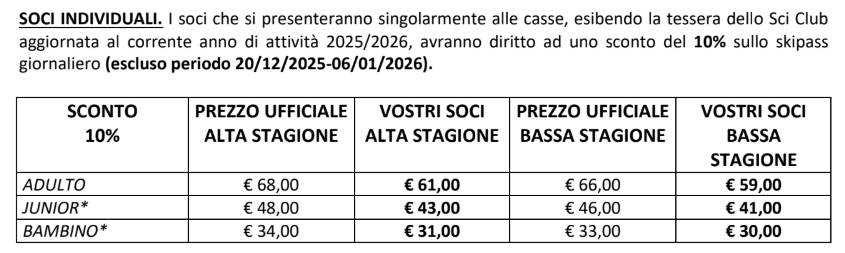 Skipass scontati (clicca sul comprensorio per conoscere la scontistica)